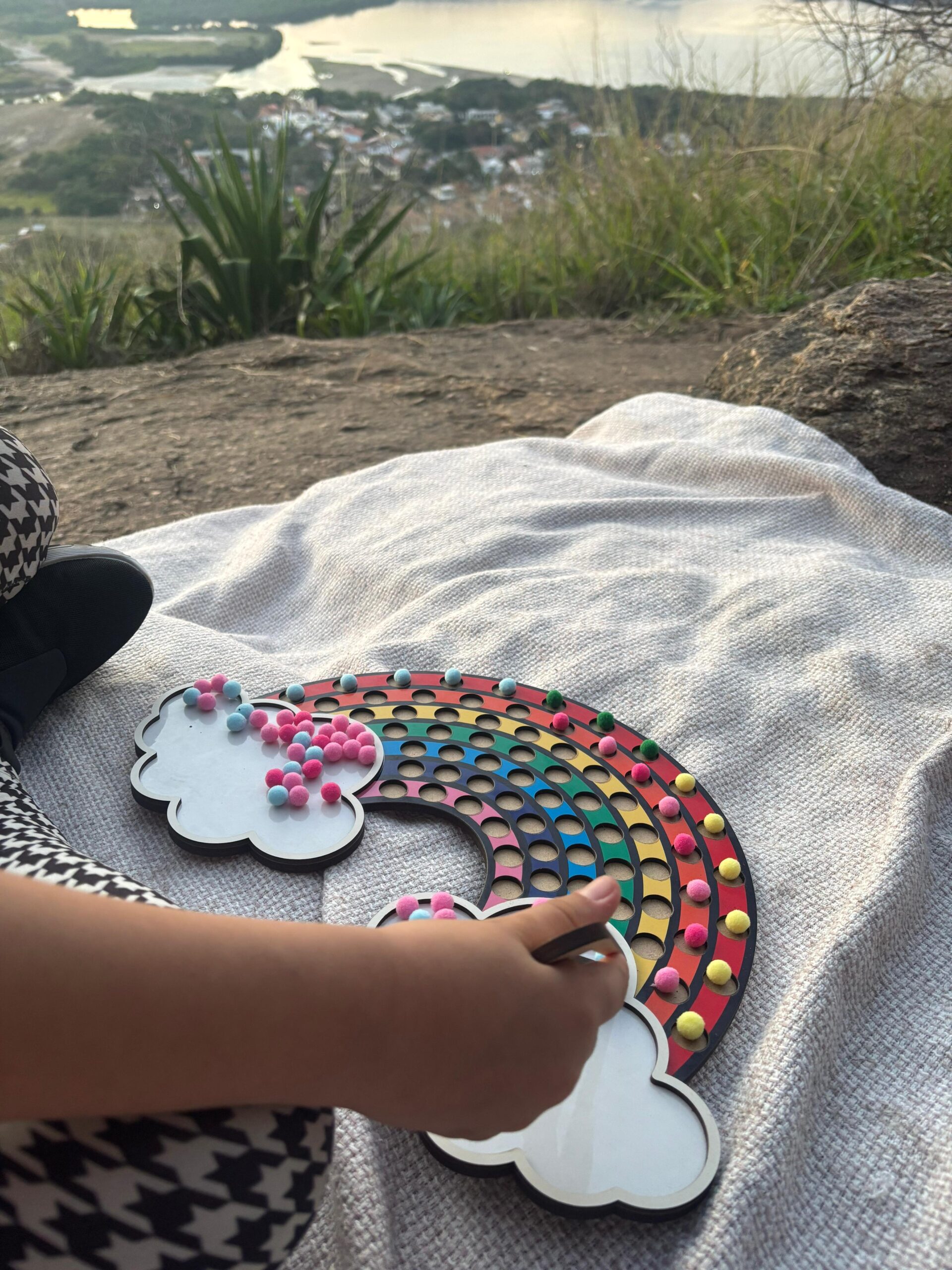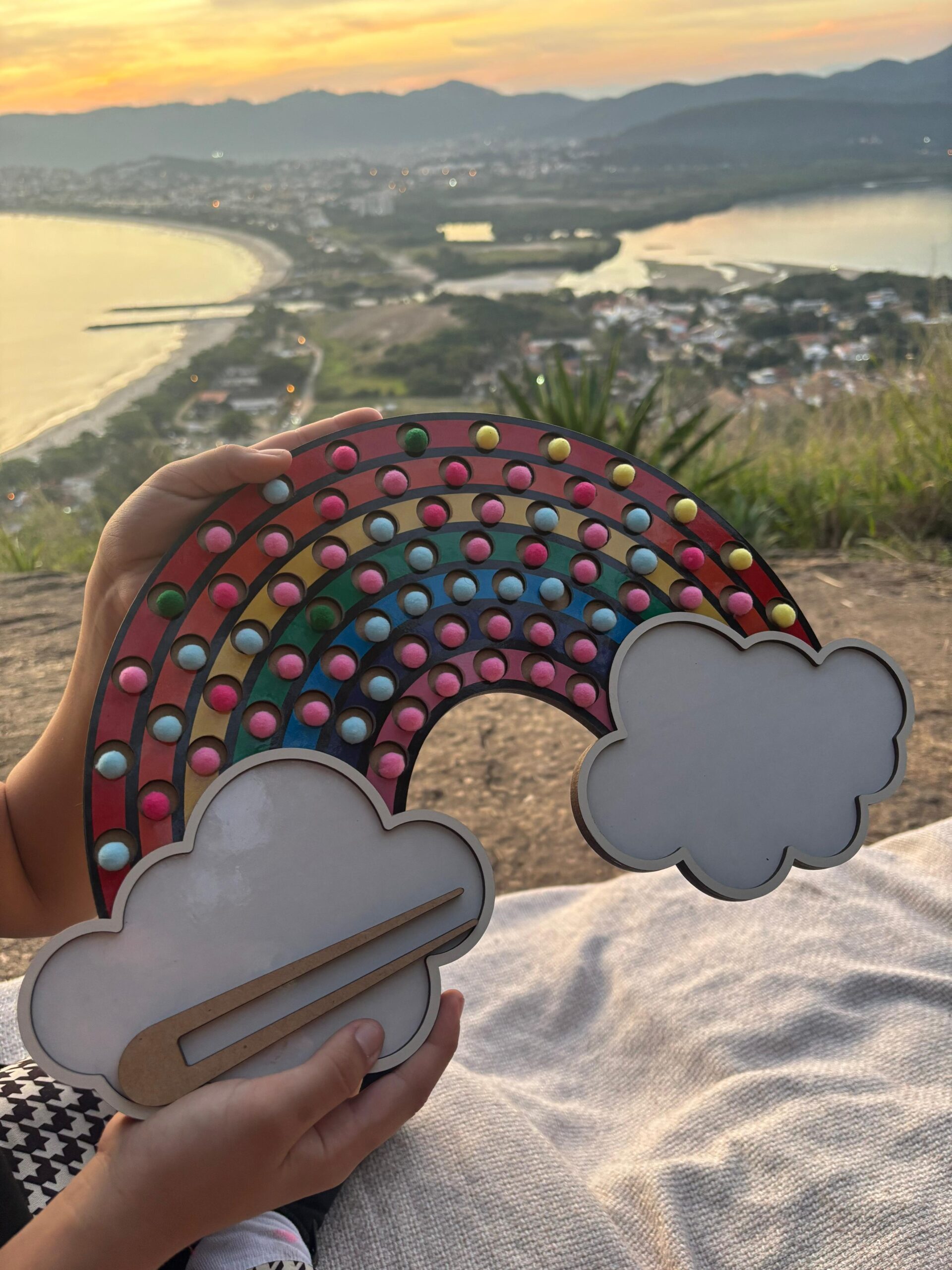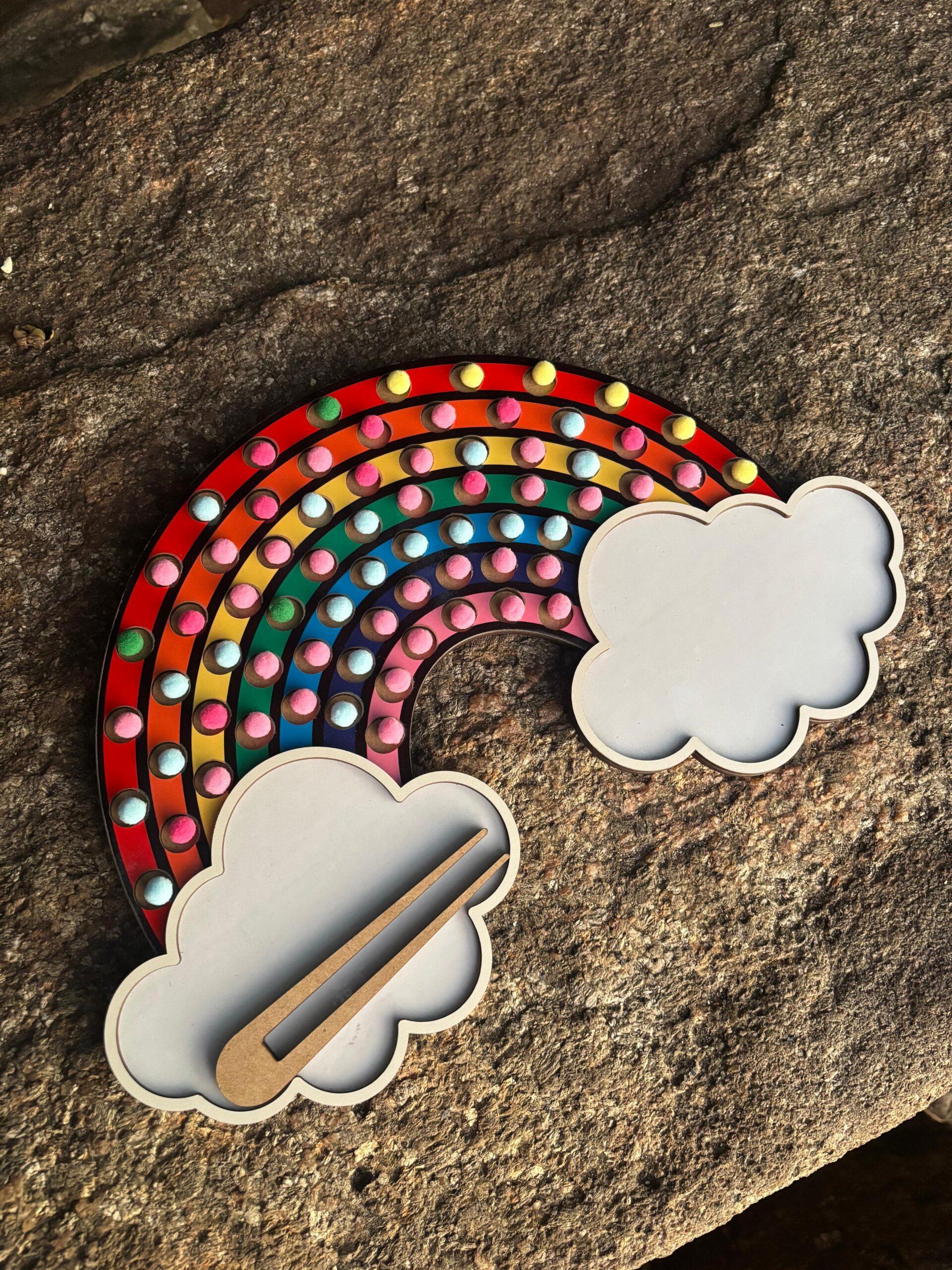 Este lindo arco-íris de MDF acompanha bolinhas coloridas e uma pinça de madeira que desafia os pequenos a posicionar as peças nos caminhos coloridos, promovendo foco, paciência e precisão nos movimentos. Ideal para crianças a partir de 3 anos.