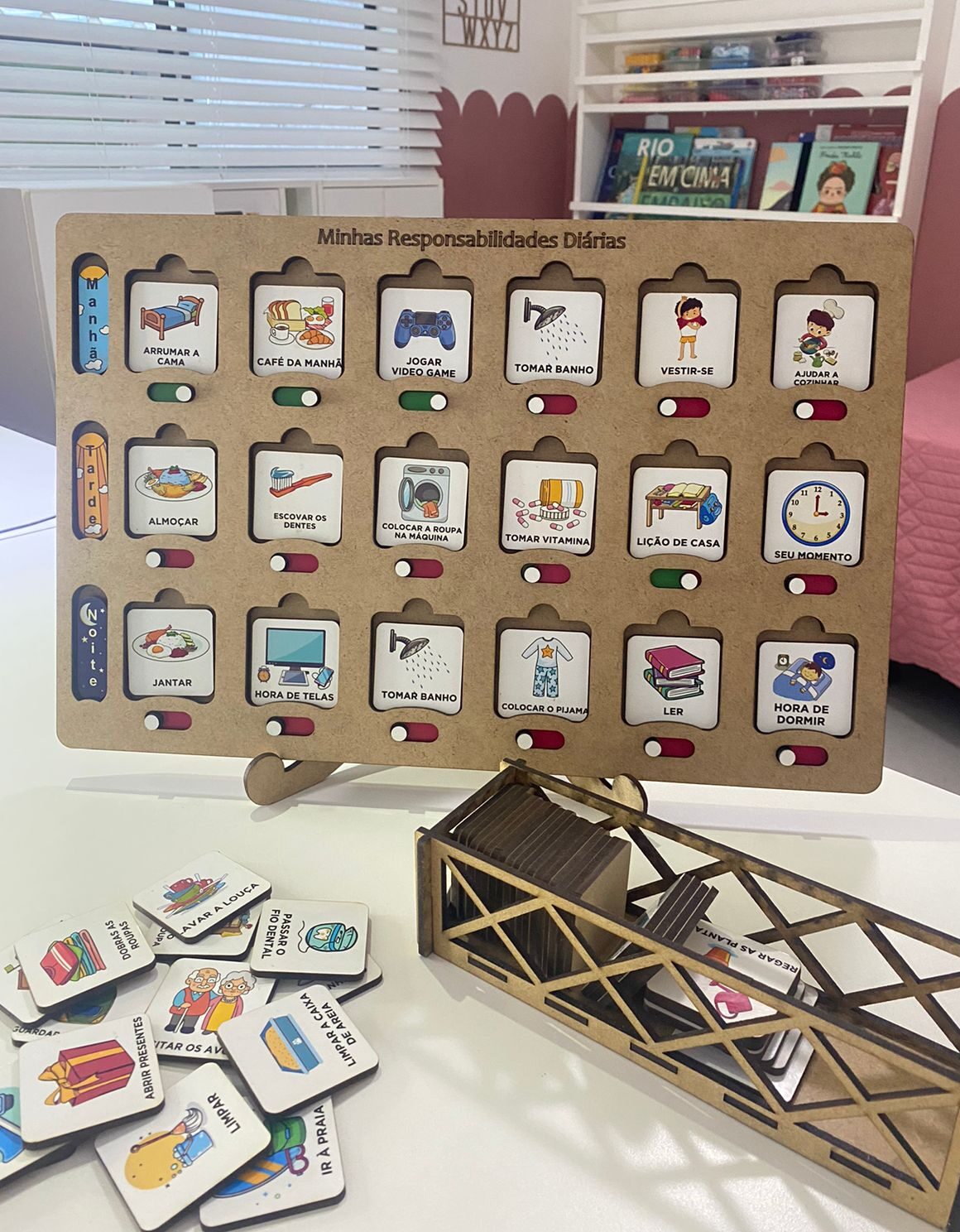 -1 base de MDF para organização da rotina (manhã, tarde e noite)